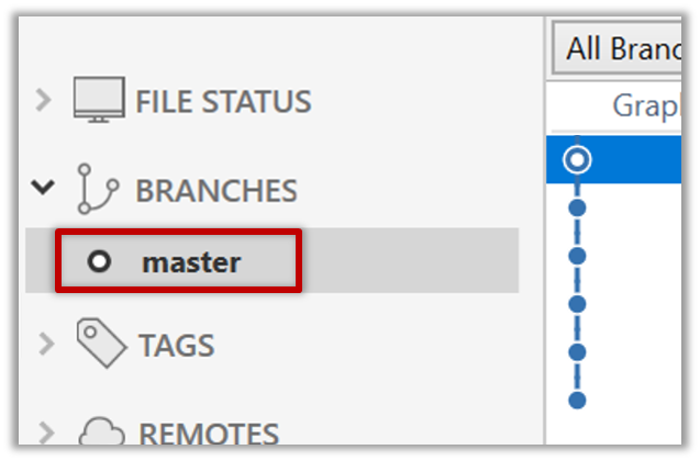In the screenshot above, you see a master ref and a origin/master ref for the same commit. The former identifies the of the local master branch while the latter identifies the tip of the master branch at the remote repo named origin. The fact that both refs point to the same commit means the local master branch and its remote counterpart are with each other.