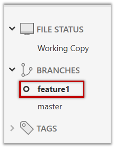 Note how the feature1 is indicated as the current branch (reason: Sourcetree automatically switches to the new branch when you create a new branch, if the Checkout New Branch was selected in the previous dialog).