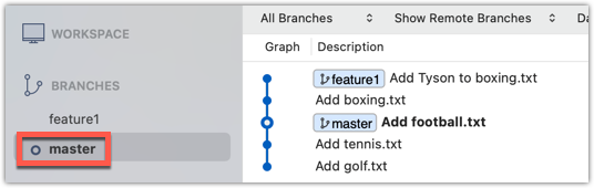 To keep things simple for the time being, this commit should not involve the boxing.txt file that you changed in the feature1 branch. Of course, this is easily done, as the boxing.txt file you added in the feature1 branch is not even visible when you are in the master branch.