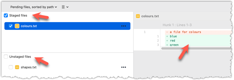 git diff -- fruits.txt # unstaged changes to fruits.txt